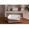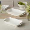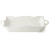 This Perlette Cream Medium Rectangular Baker blends elegance and practicality with its scalloped rim and delicate beading. Its versatile design complements any décor and is oven safe, making it perfect for both daily use and special occasions. Celebrate tradition and the joy of sharing meals with this timeless serveware addition.