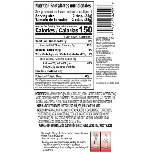Give a colorful, decorative flair to your favorite treats with this ready-to-use icing. Includes round and star plastic tips so you can create fun designs on cupcakes, cookies and cakes.