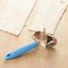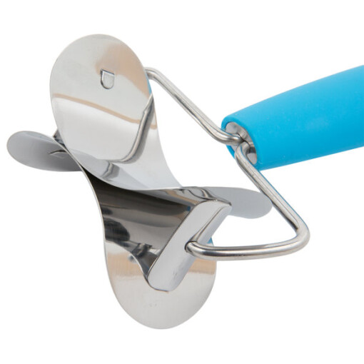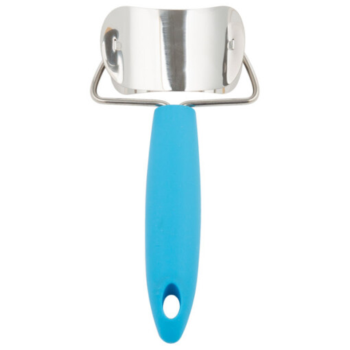 Prepare pierogis, ravioli, dumplings, and more with the assistance of this 2 1/2″ stainless steel rolling circle cutter with blue silicone handle. This half circle cutter quickly and efficiently produces 2 1/2″ round cut outs of dough, perfect for cookies, biscuits, and more. Plus, you can use this versatile tool to cut fondant for decorating your custom cakes! The cutter produces back-to-back half circles as it rolls smoothly along. This design ensures minimal dough is wasted, as there is no space in between circles.