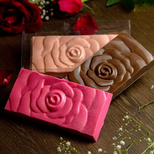 This rose BWB candy bar mold will make the perfect treats for holidays and special events. The best part? This is a three part mold, which makes chocolate making a breeze!