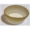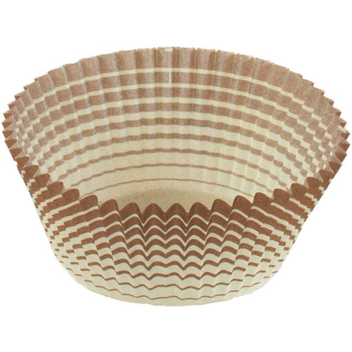 These Novacart grease-proof paper baking cups are perfect for bars, eclairs, cupcakes and more. Gold Striped design compliments your baked goods. (Colors in photo are not accurate.) Available in multiple sizes. Includes 15 pieces per bundle. Certified by the Kof K.