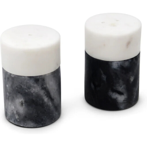 This salt & pepper set features a sleek and stylish design in white and black marble. Made from high-quality materials, it adds a touch of elegance to any dining table. Enhance your dining experience and add a touch of sophistication to your meals with this beautiful set.