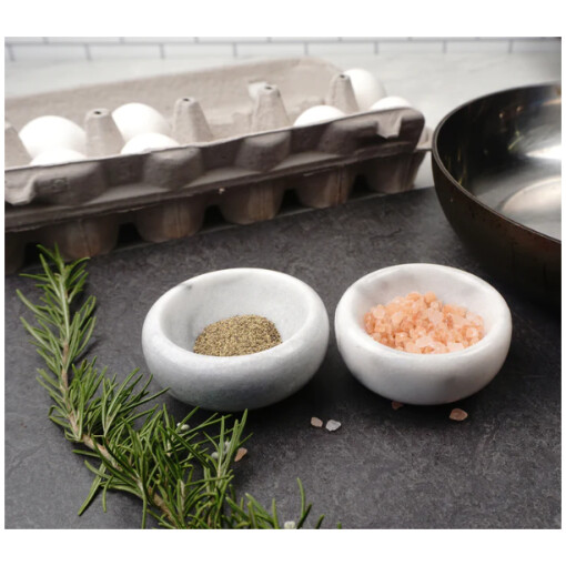 Adorable marble bowls are perfectly sized to hold 1 oz. of your favorite gourmet salts, herbs and spices.