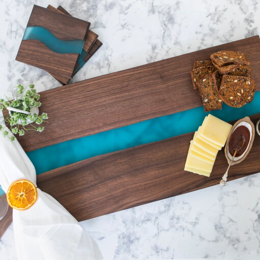 Serving Board Dark Wood Blue Resin