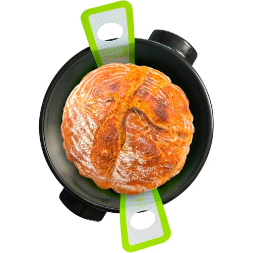 -EASY TO USE BREAD SLING: This reusable silicone bread sling is the perfect bread accessory for baking in a dutch oven. Just place your dough on the bread mat, lower into the dutch oven for baking, and then use the long handles to take the bread out when it is done!