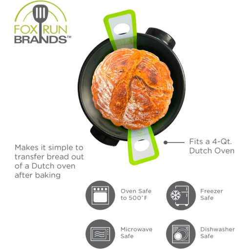 -FITS 4 and 5 QUART DUTCH OVEN: The non-stick bread sling is designed to fit into a 4 or 5 quart dutch ovens which gives you ample space to bake a scrumptious loaf of bread!