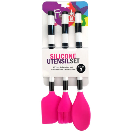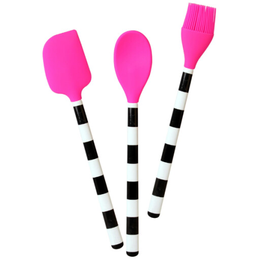 - Our 3-piece set includes spoon, spatula, and brush.