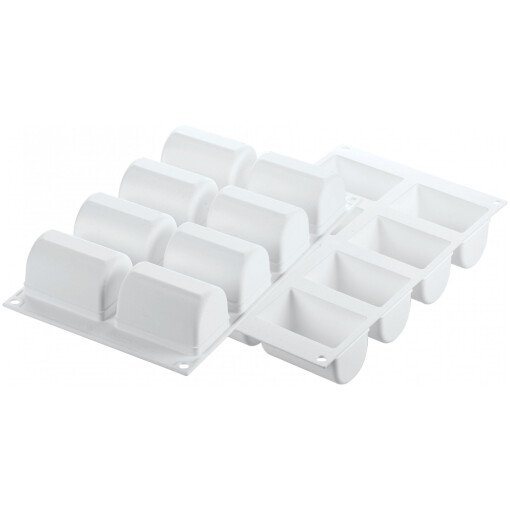 Elegance at your fingertips with the new Bûchette140 mold signed by the pastry chef Yann Couvreur in collaboration with the Silikomart Professional designers. Tradition meets modernity creating an immortal mold characterized with a new dimension: 8 cavities of 140 ml each, for delicious and timeless creations. With Bûchette140 you will give life to a new tradition. The mold has a temperature resistance of -76F to 446F (-60C to 230C). Made of silicone allowing flexibility for ease of peeling off frozen food. Anti-adherence for easy release of baked food and minimal cleaning of mold.