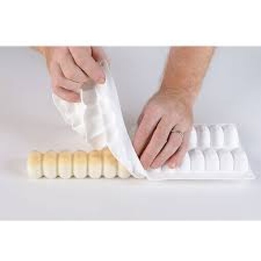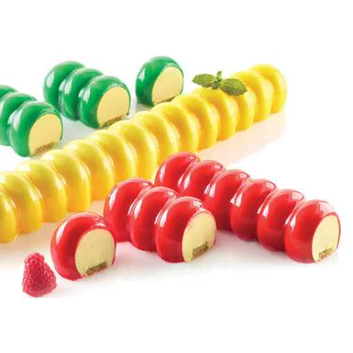 Segmented like a caterpillar, each channel of this mold has 15 bulges separated from each other by 14 narrower connections. Those separations/connections let you slice through your baked or frozen food product to your required size. Slice into single pieces for a macaroon-like shape, or leave multiple bulges connected, preserving the caterpillar shape.