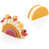 Rainbow 26 consists of a silicone mould and a double use cutter. Silicone mould is suitable for the creation of the main body of the preparation (mousse/semifreddo/cake), while the cutter is suitable for shortcrust/biscuit that fit perfectly into the shape of the preparation. The cutter is also suitable for chocolate decorations by tempering the chocolate between two sheets and then cut.
