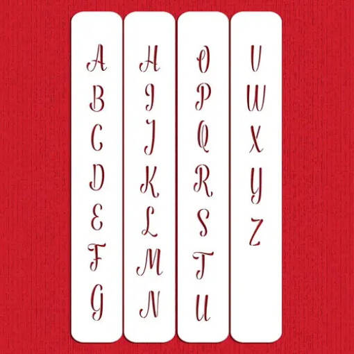 This capital alphabet letters cake stencil is perfect for creating initialed chocolates, cookies and monograms. The set consists of 1.25″ uppercase letters. Stencil is made out of durable, 10mil food grade plastic.