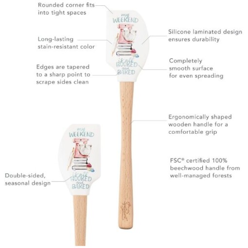 - WHIMSICAL DESIGN: Featuring a playful “My Weekend is All Booked and Baked” design, this spatula is perfect for home bakers and culinary enthusiasts who enjoy filling their weekends with delicious creations.