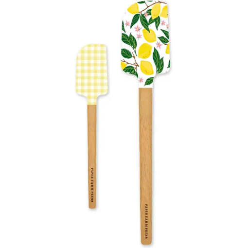 Brighten up your baking with the Lemon Grove Kitchen Spatula Set! This spatula features a hand-illustrated lemon and floral print. Crafted from heat-resistant silicone with sturdy wooden handles, it’s perfect for mixing, stirring, and scraping. Whether you’re whipping up a fresh batch of cookies or cooking a family favorite, this spatula bring a sunny, farmhouse touch to your kitchen. A sweet and zesty gift for bakers, cooks, and lemon lovers!