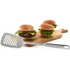 Crafted from heavy-duty stainless steel, this turner features a slotted design that efficiently drains grease and liquids while lifting and flipping foods with ease. The angled edge slides smoothly under delicate items like fish or eggs, while the sturdy handle ensures a secure, comfortable grip.