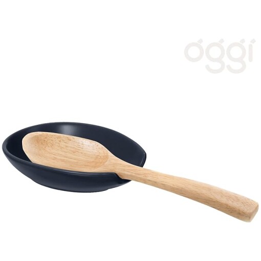 Utensil rest for stove top or countertop protects surfaces from stains or hot utensils