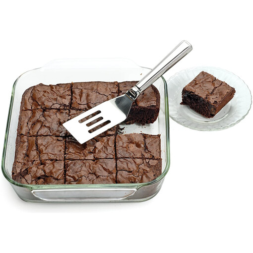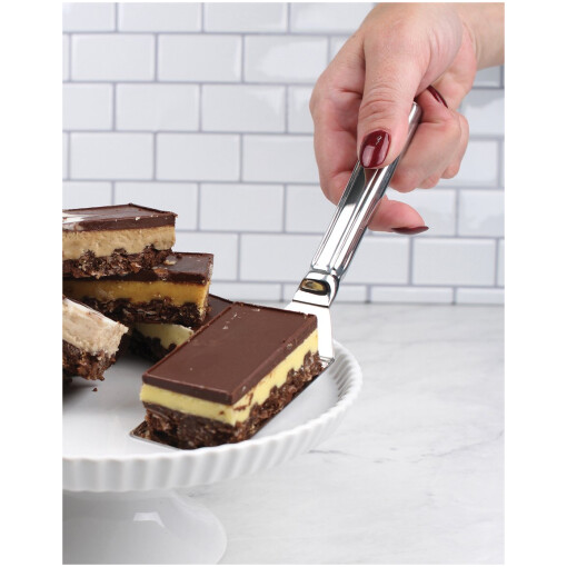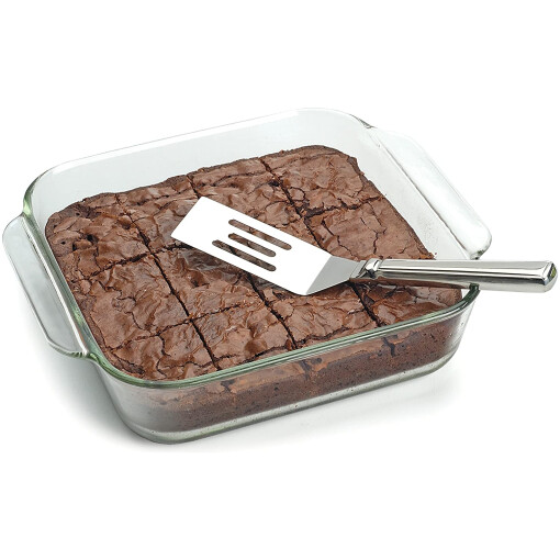 This Stainless Steel Brownie Spatula by RSVP is an excellent choice for serving portions of brownies and sheet cake. It’s made of durable 18/8 stainless steel with a polished finish and it’s dishwasher safe.