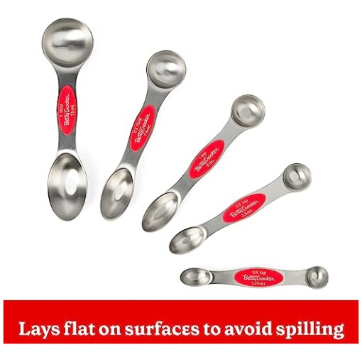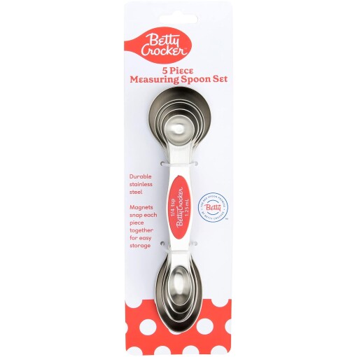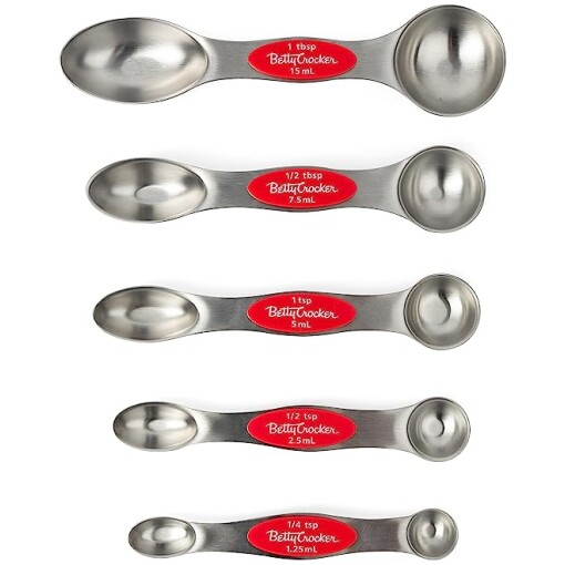 INCLUDES – 5 spoons each with dual end – 1 tbsp (15ml), 1/2 tbsp ( 75ml), 1 tsp (5ml), 1/2 tsp (25ml), 1/4 tsp (125ml)