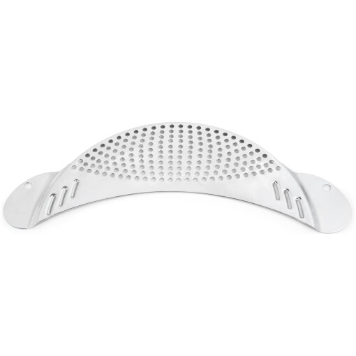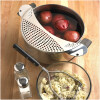 If you have a problem finding space for a strainer or colander, this is the perfect solution. This slim, space-saving strainer has handles on both sides for easy use and stability when pouring out liquid from pots. Made from durable stainless steel with a satin finish, you won’t need to worry about this product rusting. To use, simply place on the outside of the pot and hold with the handles while tilting over to drain. This Pot Drainer will fit most common pots and pans. A truly great alternative to big colanders that take up all of your needed cabinet space.