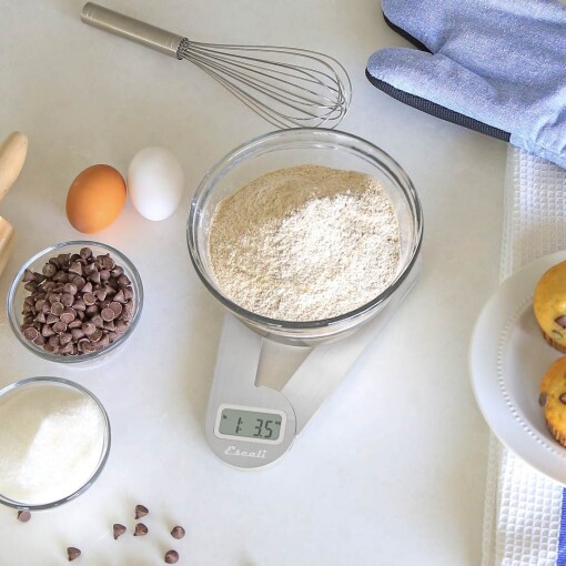 The Escali Savu Space Saving Scale features an adjustable platform for the convenience to measure large items within a compact design that can store anywhere. Pull the platform arms apart to maximize your measuring space, or collapse them together to take the scale on-the-go. The stainless steel platform and touch sensitive controls make this scale stylish and easy to clean. Fully expand the platform to measure large items and close the platform for compact and easy storage. The touch sensitive controls create a single, smooth surface which is easy to wipe clean. Reset the scale to zero weight to measure multiple items or subtract the weight of container. Measures both liquid (fl oz, ml) and dry ingredients (g, oz, lb + oz). The scale will turn off after five minutes of inactivity to help conserve and extend battery life.