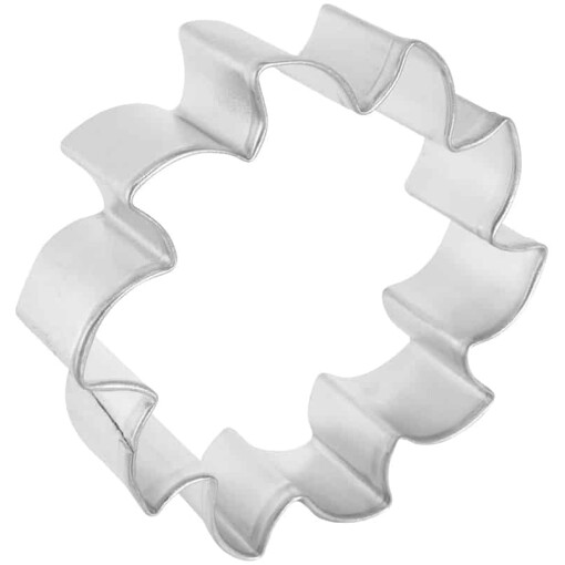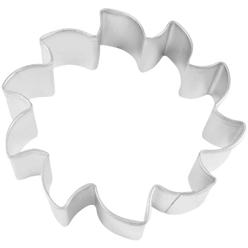 Tinplated Steel Sun 3.5″ Cookie Cutter. Hand wash and dry thoroughly before storing.