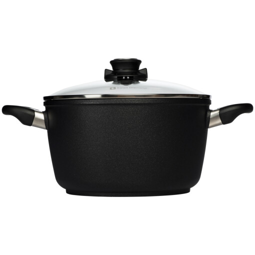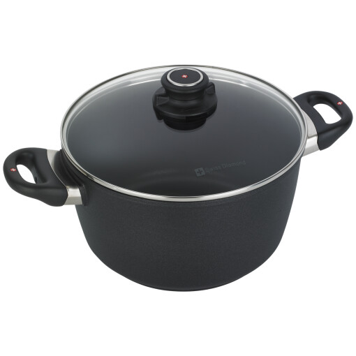 In search of a pot that can handle everything from soups, stocks, stews, pastas and more? Then this Swiss Diamond 5.5 Qt. Nonstick Soup Pot is just the pan for you. With its thick and heavy, cast aluminum construction and the new and improved Swiss Diamond XD nonstick coating, this Soup Pot is in a league all its own. Featuring 20 percent more diamonds than the previous HD nonstick coating, this soup pot features a rivet-free cooking surface for maximum protection against bacteria. The extra thick, cast aluminum body features a perfectly flat base that will not flip, spin, tip or warp while cooking. Nothing conducts heat more quickly or evenly than diamonds, which means you never need to use more than low to medium heat. With one of the most uniform heat distribution surfaces on the market, this pot is ready for years of soups and stews. Designed for a healthier cooking experience, Swiss Diamond allows for you to cook with no access oils or butters, leaving you with lighter meals and years of healthy eating. The pot is manufactured using an eco-friendly production process, and this nonstick coating is PFOA-free and safe for your whole family. The new XD coating, combined with the cast aluminum body maximizes heat transfer to eliminate hot spots and allowing you to never have to use more than low to medium heat. With this Soup Pot, do-it-yourself stock is a breeze to make, and investing in this pot means you’ll always have the right equipment.