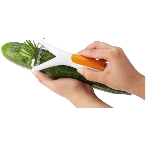 The Zyliss Julienne Peeler comes with a serrated blade that can cut thin, elegant strips for all manner of food presentation and extra flair. Carrots, potatoes and fruits look delicious, ensuring kudos for the cook for the art of presentation and skill. Great for making Zoodles, salad toppings or any other kind of shredded vegetable dish.
