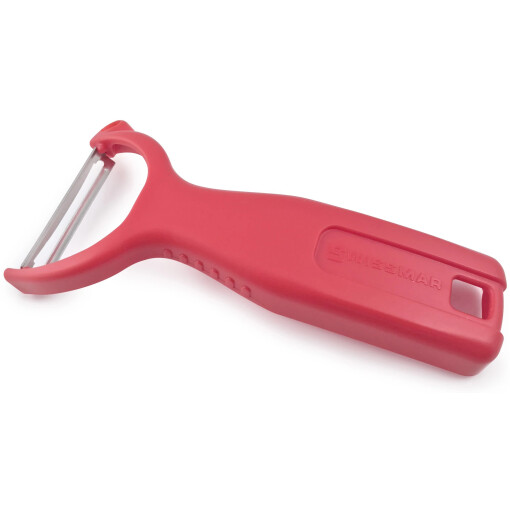 Premium-quality Swiss Made peeler. New easy to use and ergonomically designed handle. Stainless steel scalpel blade stays sharp for perfect peeling of hard fruits and vegetables. Integrated side cutter for removing potato eyes or blemishes. Plastic blade protector included. Suitable for left or right-handed use. Dishwasher safe.