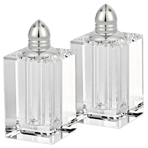 A new classic! Now a new tall clean and gorgeous rectangle design version of Badash Crystal’s salt and pepper offering – these will add elegance to any table. Every bride, home, and restaurant should have these. The pairing of salt and pepper as table accessories dates to seventeenth-century French cuisine. We always recommend mixing a few grains of rice with your salt to absorb any excess moisture. It’s a handcrafted optical crystal and lead free crystal.
