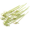 Perfect for garnishing drinks, sandwiches or adding flair to appetizers. Thin, flat strips of bamboo with a knotted decorative end. Available in tea and green and 2 sizes–4″ or 7″.