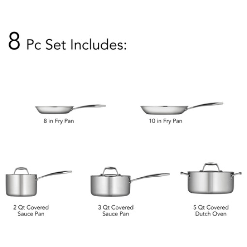Get ready to whip up your favorite culinary masterpieces! Tramontina’s 10 Pc Tri-Ply Clad Stainless Steel Cookware Set includes the essentials to equip your first kitchen or update your current one. The premium 18/10 stainless steel set features a professional 8 in fry pan; 10 in fry pan; 2 Qt. covered sauce pan; 3 Qt. covered sauce pan, 5 Qt. covered Dutch oven, and 8 Qt covered stockpot. Each piece is made with a three-layer construction that allows for even heating on any cooktop! Ergonomically designed, cast stainless steel handles are riveted for a comfortable grip and easy control.