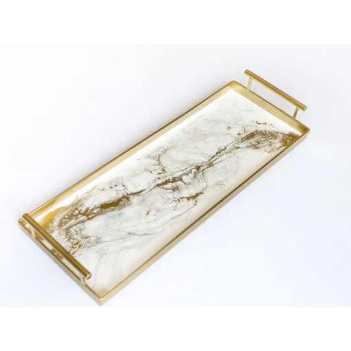 Tray Resin Rectangle Gold Quartz with Handles