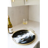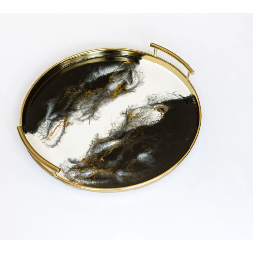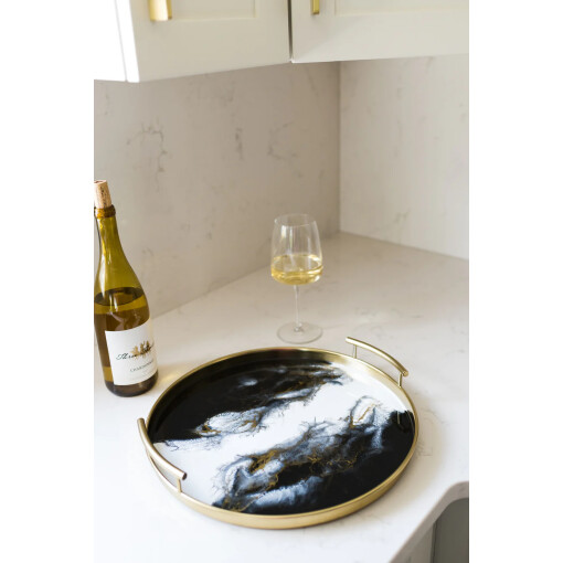Tray Resin Round Gold Onyx Accented with Handles