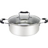 Carefully crafted from quality stainless steel that will not rust or corrode, this large stock pot is designed to be compatible with all kinds of cooktops – gas, induction, halogen and electric. It features stay cool silicone handles – riveted on for extra durability – so you don’t have to worry about burning your fingers when you cook, and a see-through glass lid that allows you to see at a glance where your food is up to. Vented steam hole prevents rattling and overboiling. This big metal pot holds seventeen quarts – great for making stews, simmering soups, or cooking pasta. It measures 11.8 inches in diameter and is dishwasher safe for a super simple cleanup.