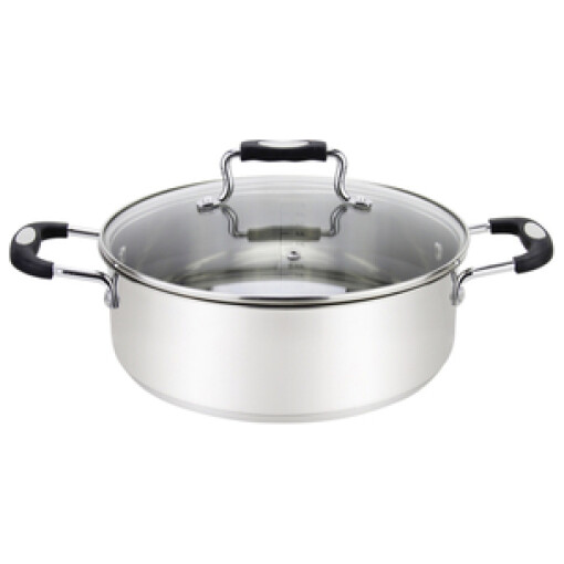 Carefully crafted from quality stainless steel that will not rust or corrode, this low pot is designed to be compatible with all kinds of cooktops – gas, induction, halogen and electric. It features stay cool silicone handles – riveted on for extra durability – so you don’t have to worry about burning your fingers when you cook, and a see-through glass lid that allows you to see at a glance where your food is up to. Vented steam hole prevents rattling and overboiling. This metal pot five quarts – great for making stews, and more! Dishwasher safe for a super simple cleanup.