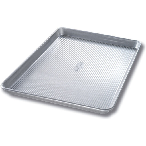 The USA PAN® Extra Large Sheet Pan provides home bakers with a classic baking experience for Creating flawless homemade cookies, bread rolls, or brownies! The pan surface is coated with AMERICOAT® coating, a non-stick silicone, allowing you to easily release your baked goods from the pan. AMERICOAT® is made without PTFE, PFOA and BPA. USA PAN®’s professional grade bakeware helps everyday home bakers produce professional grade baked goods.