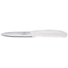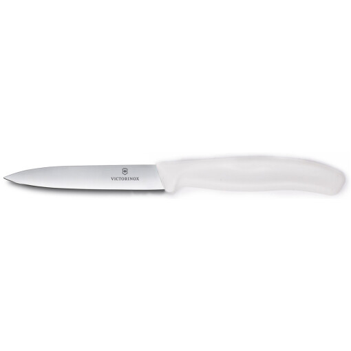 The paring knife is versatile and perfect for tasks that require precision. Spear point paring knives are excellent for peeling, slicing small produce, removing stems or corn on the cob and other tasks that require a small blade. Victorinox Paring Knife has a large black propylene handle and an edge that is conically ground length and crosswise for a wider break point. This gives the blade superior durability and resistance to fracturing. Victorinox laser tests all their blades to ensure world renowned sharpness.