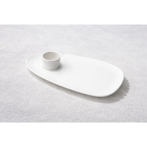 Serve appetizers and dips in style with this appetizer plate. Its elegant teardrop shape paired with a built-in ramekin makes it perfect for entertaining, offering a smart and stylish way to present snacks, sauces, and small bites.