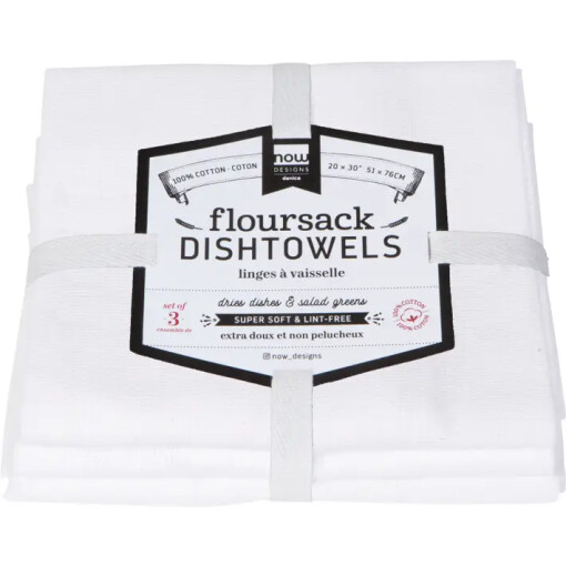 Flour Sack dishtowels are a must-have necessity for every kitchen. Fill your linen drawer with the perfect simplicity of these White Flour Sack Towels by Now Designs. Their crisp white color 5 meshes perfectly with any kitchen space. At 20×30 inches, these generously sized towels are larger than standard dishtowels.