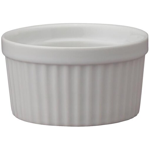 This 4 Ounce Souffle Ramekin is made of glazed white porcelain. Perfect for individual souffle’s, desserts and more. Oven safe, dishwasher safe.