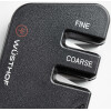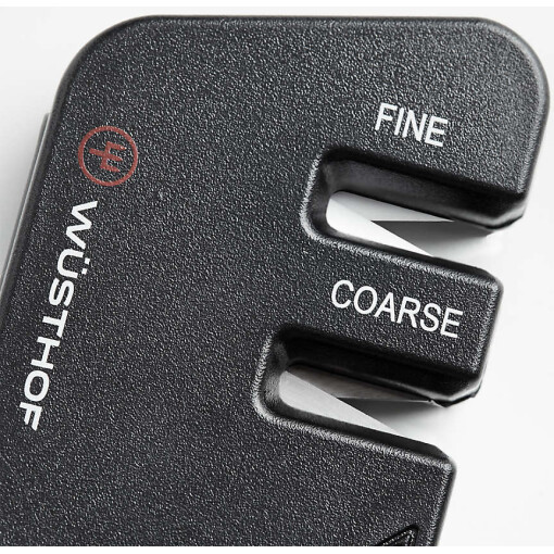 Sharpen your knives while cooking on the patio, during a picnic, or on a camping trip with this handy pocket-sized sharpener. The sharpener has two labeled sharpening slots and is equipped with a keychain for easy carrying and non-slip rubber inserts for stability. The coarse carbide heads provide dull knives an edge, while the fine ceramic rods hone sharp blades to perfection.