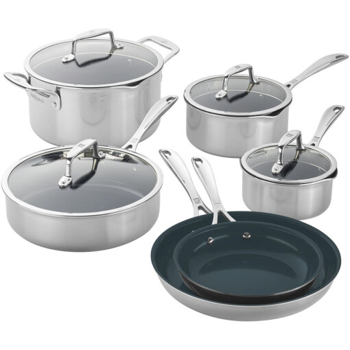HENCKELS CLAD CFX STAINLESS STEEL CERAMIC NONSTICK 10 Piece Cookware Set