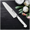ZWILLING Pro, the most user-friendly knife on the market, is now available with elegant matte white handles. ZWILLING Pro Le Blanc boasts a unique curved bolster that acts as an extension of the hand, supporting the professional pinch grip, with thumb and index finger on the blade, for safe cutting and less fatigue. The blade was designed with a broad curve in the front to facilitate the rocking motion of Western cutting, while the straight back is ideal for the Asian chopping motion. The full length of the blade can be used when cutting and can be sharpened from bolster to tip.