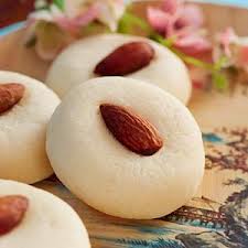 Line cookie sheet with parchment. Preheat oven to 350 degrees. Roll walnut sized balls and place on pan. Press a whole almond into each cookie. Bake 15 to 20 Minutes. Cool to room temperature.