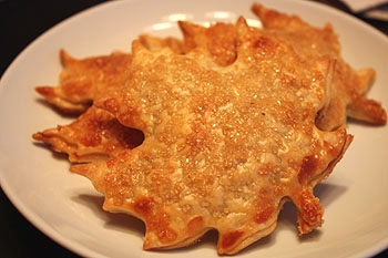 Line 2 12x18 cookie sheets with Silpat or parchment paper. Roll out half of dough to 1/8" thick. Using a 4" leaf shape cookie cutter, cut out 12 leaves from dough. Place leaves on cookie sheet. Put a heaping tablespoon of filling in the center of each leaf. Roll out remaining dough and cut 12 more leaves. Using a toothpick, etch veins onto top leaves. Brush edges of filled leaves with egg wash and top with veined leaf. Carefully press edges together to seal well. Brush each leaf with egg wash and chill for 30 Minutes in the refrigerator. Bake pies until golden brown about 30 Minutes. Serve warm.