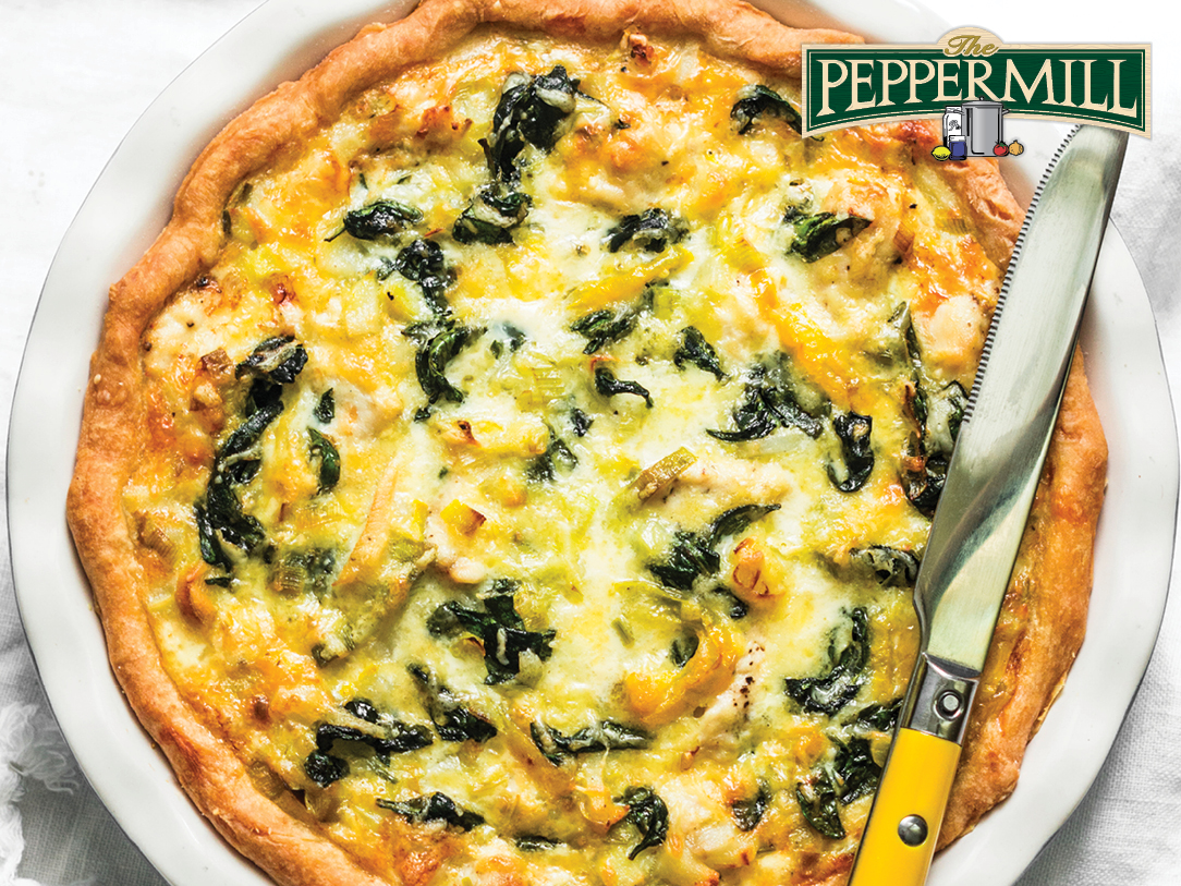 Preheat oven to 375°F. On a lightly-floured surface, roll out puff pastry until it’s 12" square. Trim off the corners to cut the dough into a circle. Transfer the dough to a parchment- lined baking sheet.