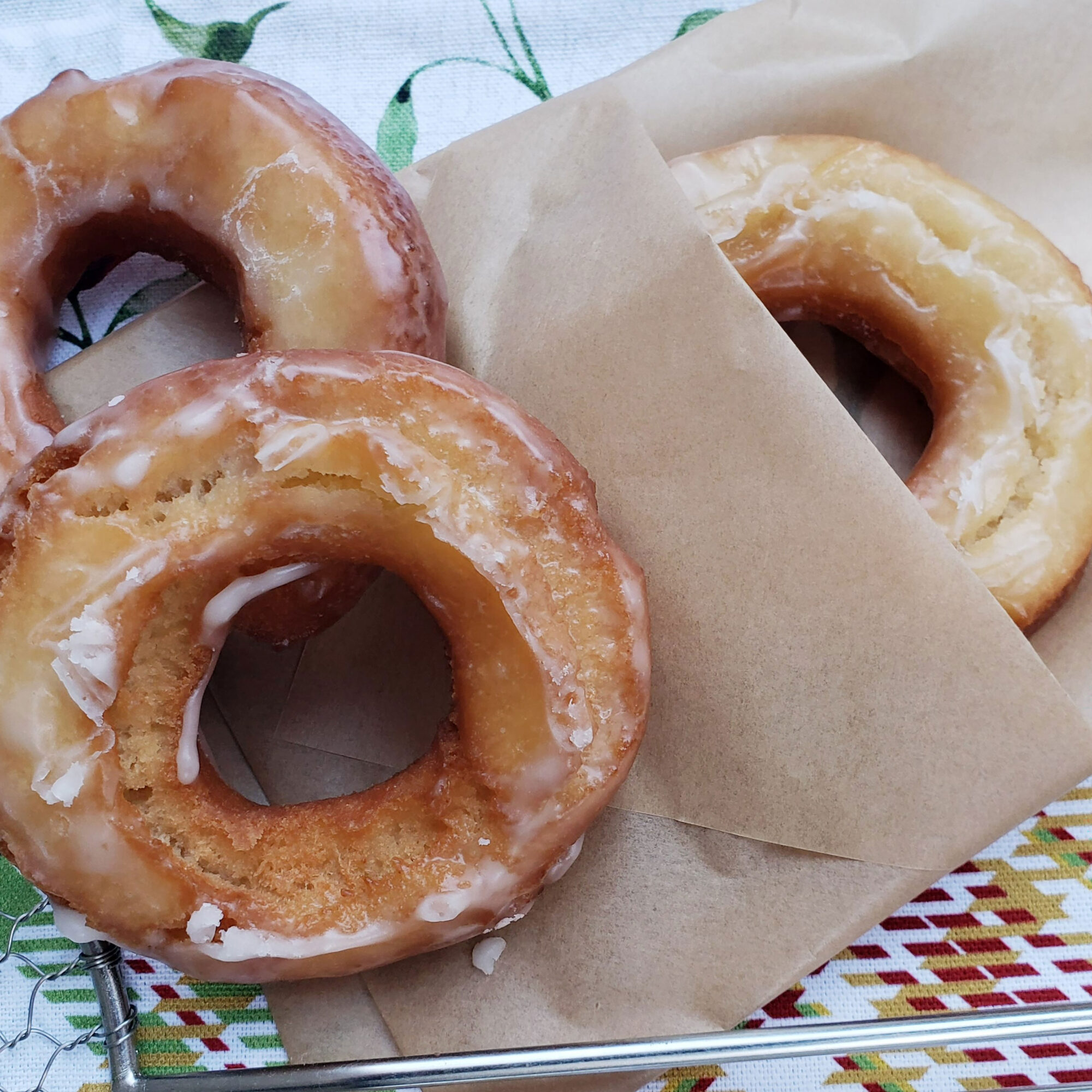 Dip warm donuts into glaze.