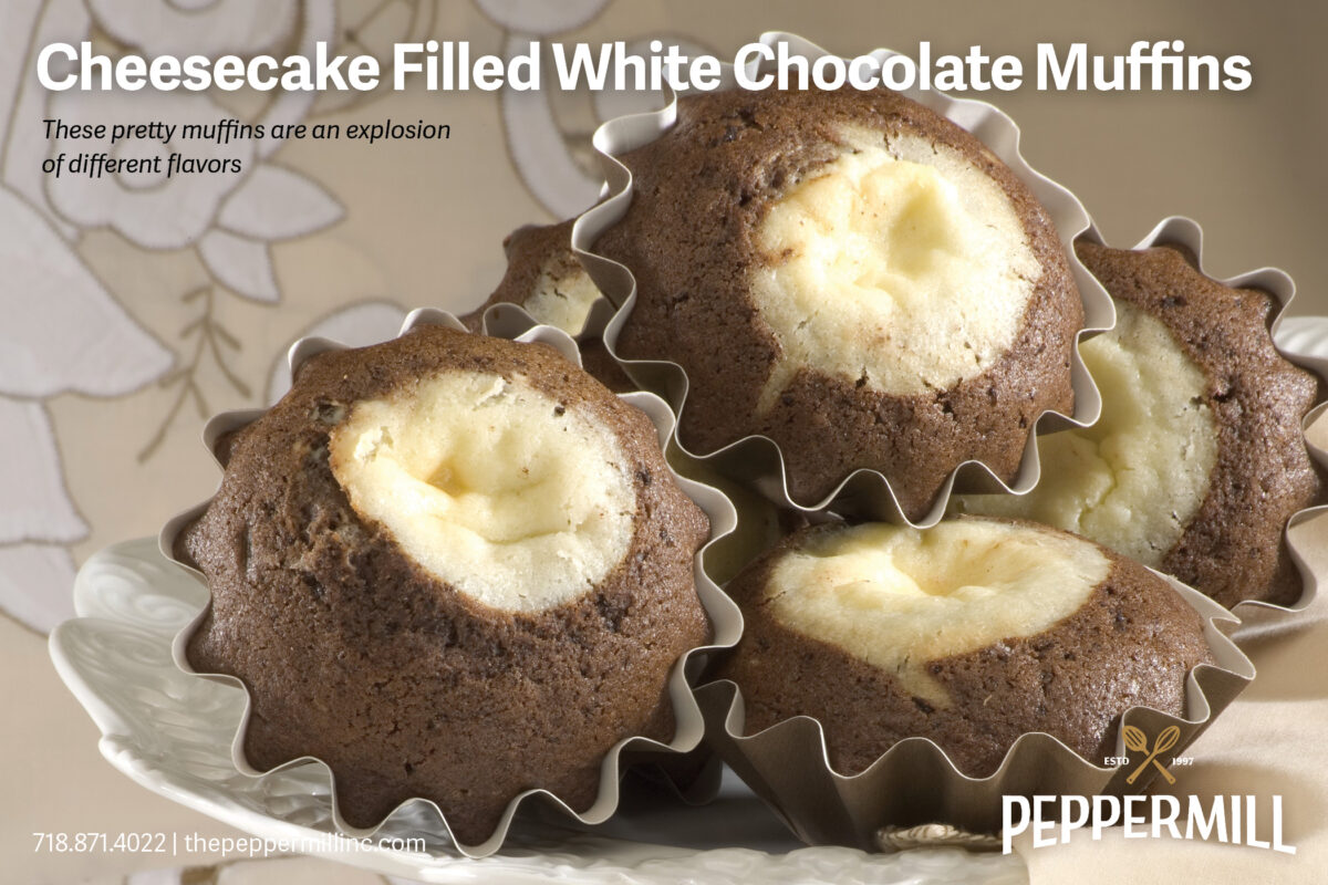 Spoon half of the batter into the prepared muffin pans. Spoon one heaping tablespoon of cheese cake filling over batter. Top each with remaining muffin batter. If you prefer, you can fill the cups with batter 3/4 of the way. Place the filling in a piping bag and squeeze cheesecake filling into the center of each muffin cup.