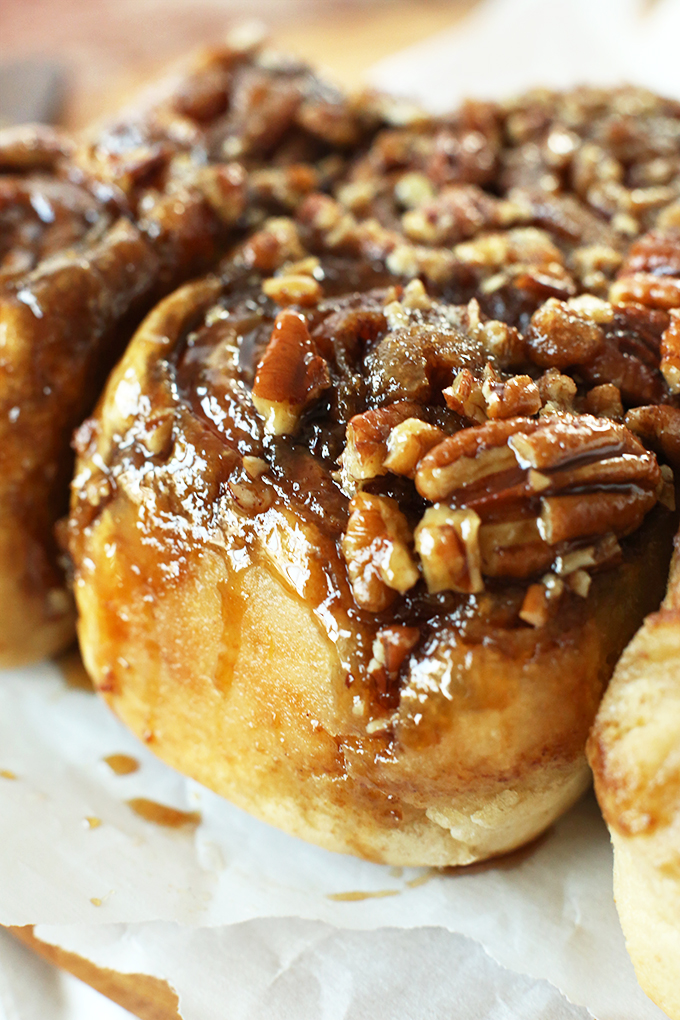 Remove the buns from the oven, and loosen their edges with a knife. Careful, the sugar is hot!turn them out onto a rack or parchment-covered sheet pan to cool, scraping any glaze that may have stuck to the pan onto the warm buns.