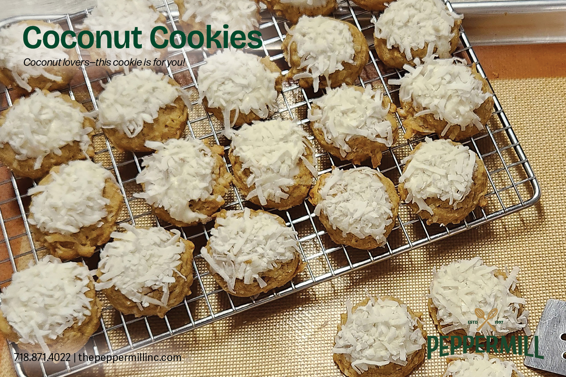 Dip the tops of each cookie in the Vanilla Cream. Sprinkle each cookie with ÂĽ teaspoonshredded coconut. Allow to set.