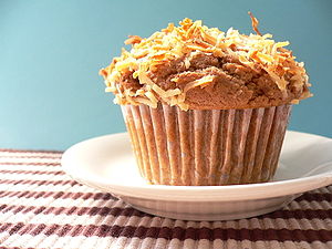 Reduce speed to low. Add dry ingredients to margarine mixture in 3 additions, alternating with coconut milk. Scrape sides of bowl if necessary. Divide batter among muffin cups, filling each 2/3 full.